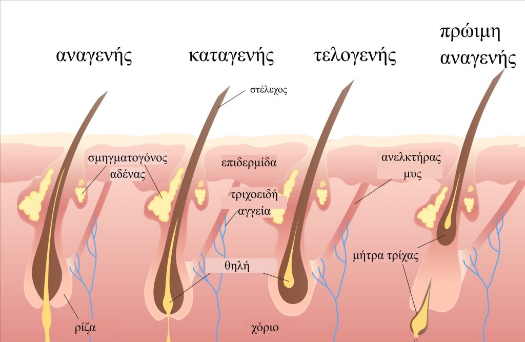 Ο κύκλος ζωής της τρίχας χωρίζετε σε τρία στάδια: