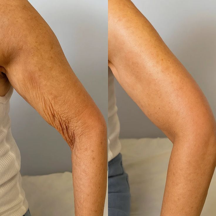 - Βραχίονες: Η θεραπεία αποσκοπεί στη μείωση της χαλάρωσης, ώστε να περιοριστεί το ζάρωμα του δέρματος στην πρόσθια επιφάνεια.